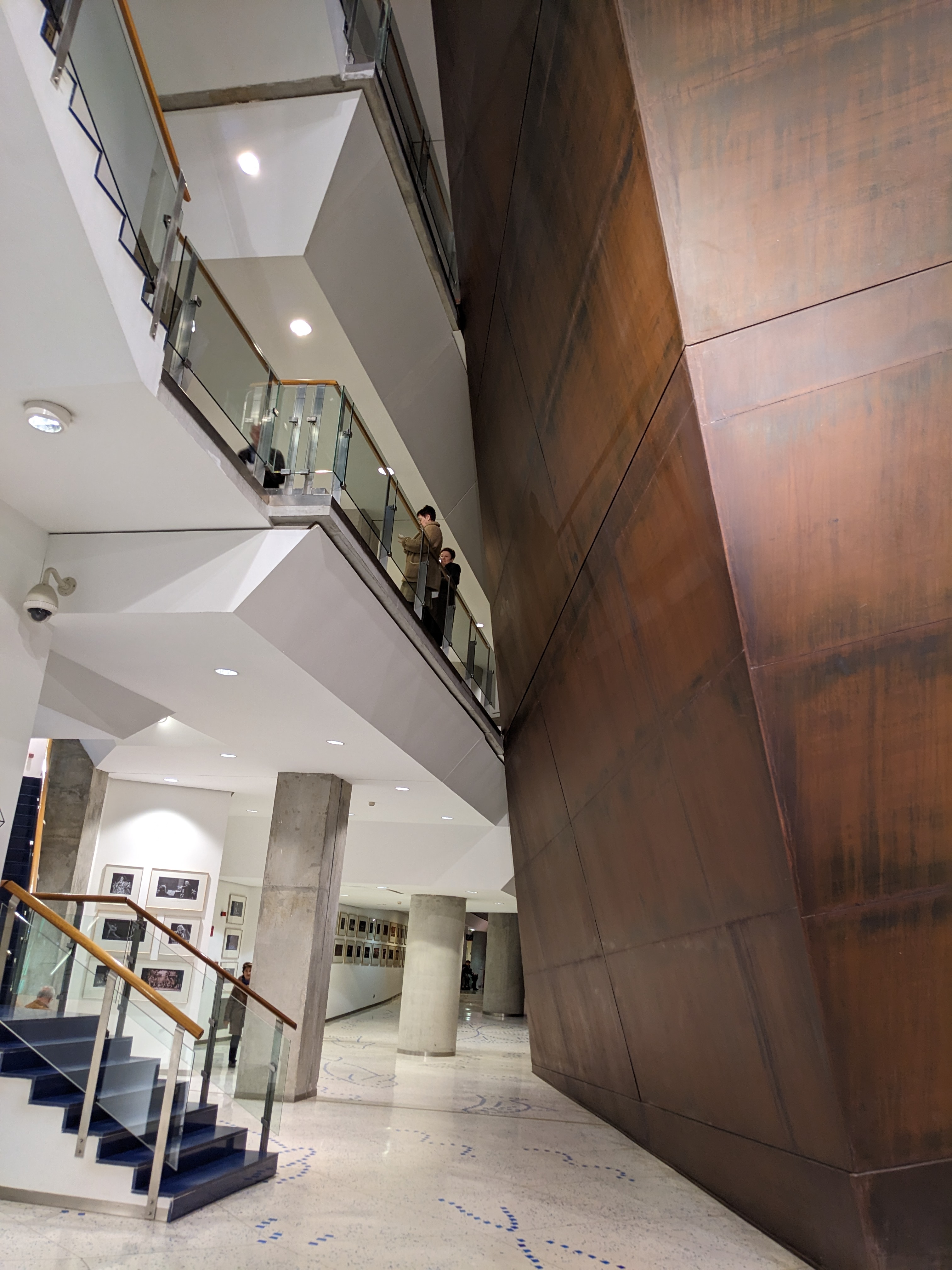 A gateway – two stone banks, grey doors with lion mask knockers. This frames a path, straight, down to the water, turbulent, with angry white horses (cf. The Edda…) And in the middle, framed by it all, one tree, perfect imperfect Nature. The wind strong, the sun clear, the sky cloudy and blue jumbled up.